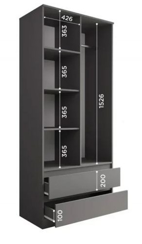 Шкаф с 2мя дв и 2мя ящ. ВЫСОКИЙ МОРИ МШ 900.2 графит